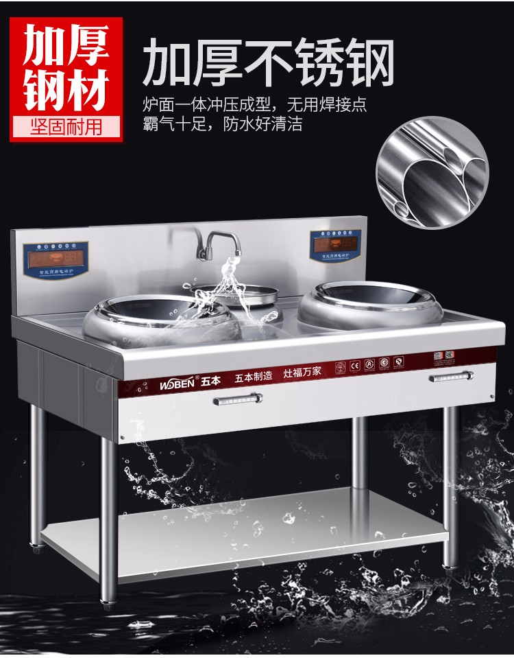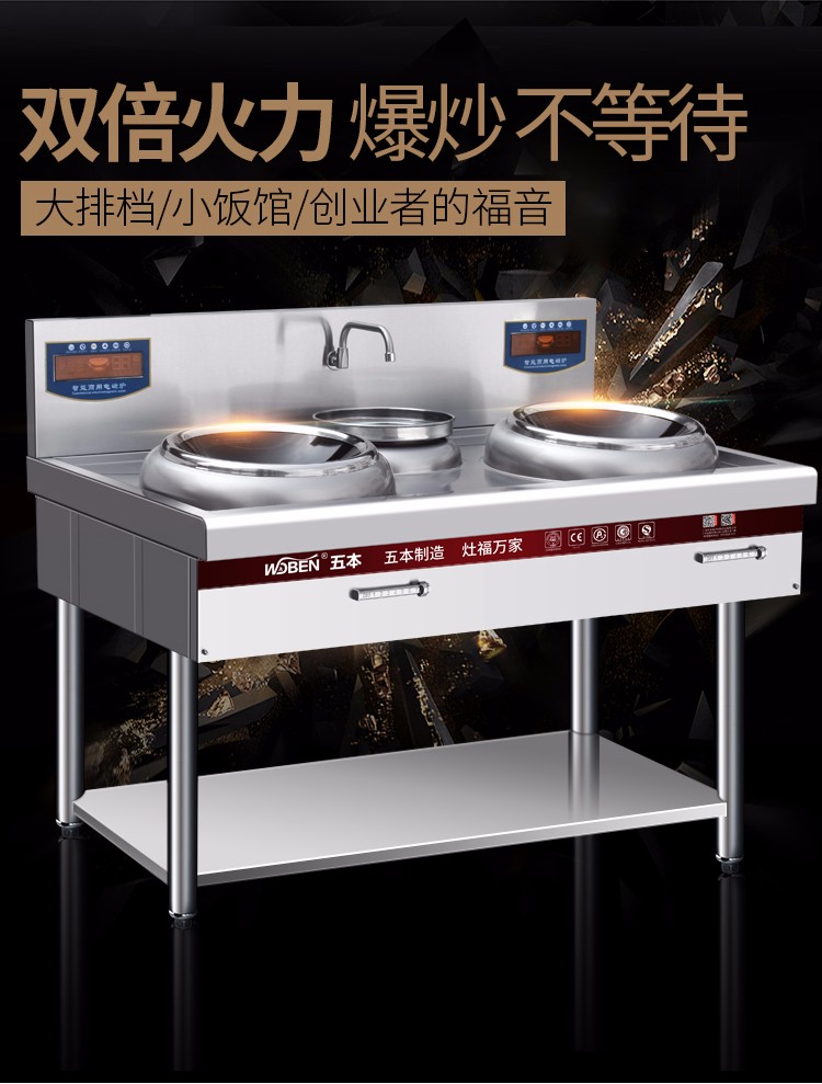 雙頭電磁小炒爐適合大排檔餐廳用,爆炒拋鍋都非常方便。