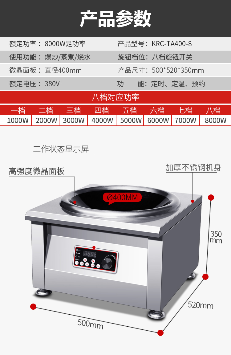 臺式凹面爐 | KRC-TA400-8 | 8KW | 380V/50HZ | Ф400 | 500*580*380 |